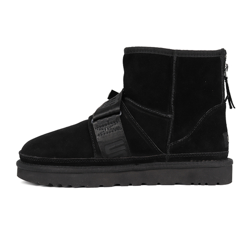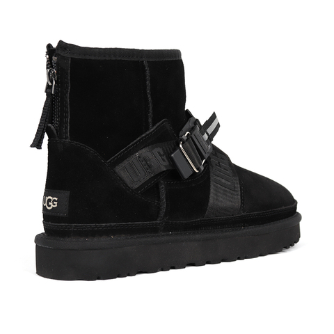 Ботинки выполнены в классическом черном цвете, который подходит к любому стилю одежды. Они имеют минималистичный дизайн и украшены логотипом UGG на пятке.