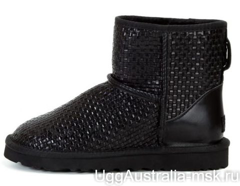 UGG classic mini woven black – это по-настоящему роскошная зимняя обувь. Верхнее покрытие женских угг выполнено в виде стильного плетения. Черный цвет обуви подчеркивает необычность модели. Сапожки сшиты из натуральной овчины, в качестве верхнего покрытия использована кожа. Эта комбинация не только надежно защитит Ваши ноги от холода, но и не позволит мокрому снегу испортить любимую пару. Специальная подошва из каучука не допустит падения на скользкой поверхности.