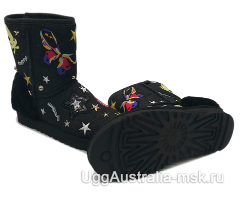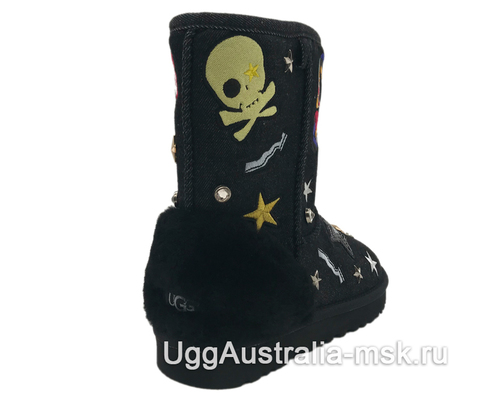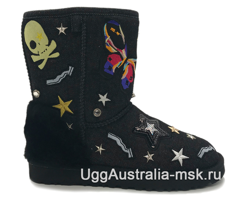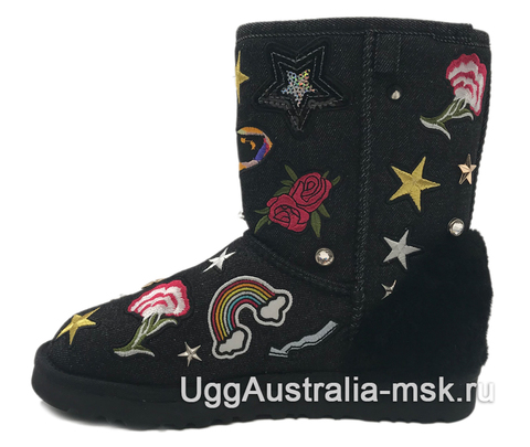 UGG Classic Short Patch It Black - женские зимние угги, которые разнообразят Ваш зимний обувной гардероб. Внешняя отделка сапожек выполнена из натуральной черной джинсовой ткани, которая украшена машинной вышивкой, пайетками и металлической фурнитурой. Такая модель придется по вкусу многим представительницам прекрасного пола, ценящим необычный стиль зимней обуви. Внутренняя отделка выполнена из натуральной овчины, сохраняющей тепло и придающей ощущение мягкости и комфорта. Антискользящая рифленая подошва обеспечит уверенное передвижение и защитит от падений в гололед.