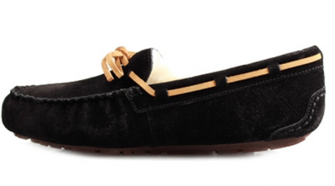 Известный бренд UGG Australia представляет Вашему вниманию женскую обувь, идеально подходящую для зимы и межсезонья – мокасины UGG Dakota Black. Мокасины изготовлены из натуральной овчины, которая прославилась своими терморегулирующими свойствами: в мокасинах комфортно при любой погоде. Верхнее покрытие – замша, не позволяющая влаге проникнуть внутрь обуви.