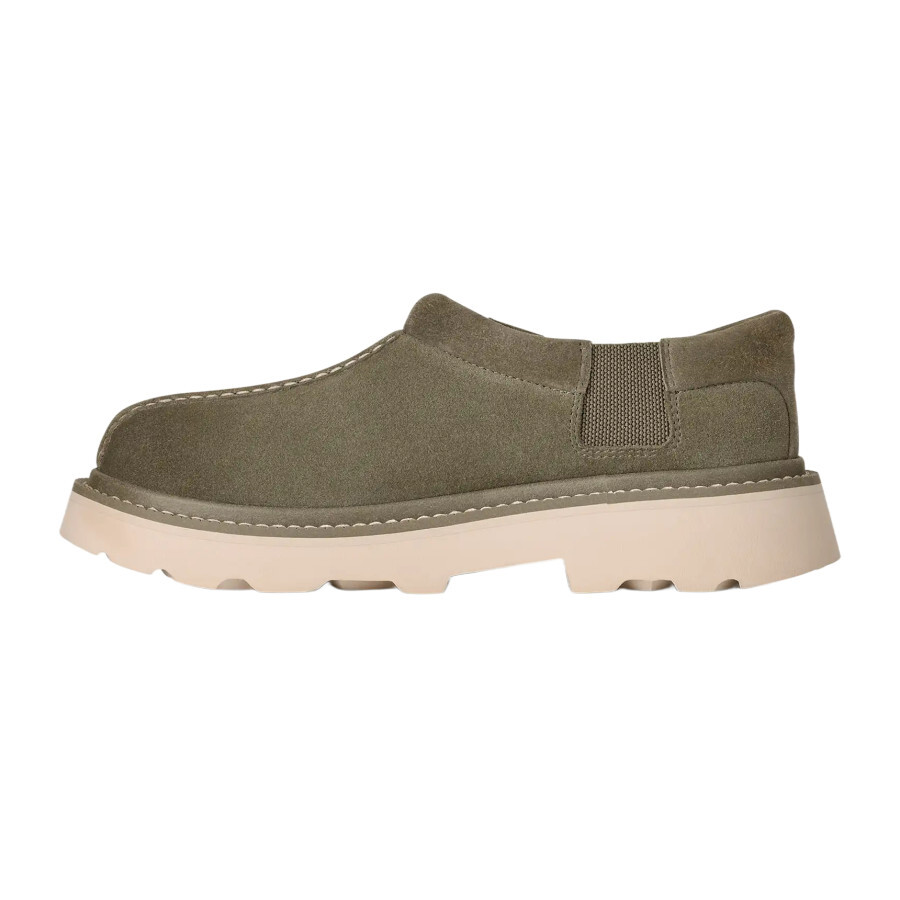 Стильные и практичные мужские угги UGG Tasman Lug цвета Moss Green Ceramic — это идеальные тапочки для дома и улицы. Модель с характерной прорезиненной подошвой обеспечивает надежное сцепление и долговечность.