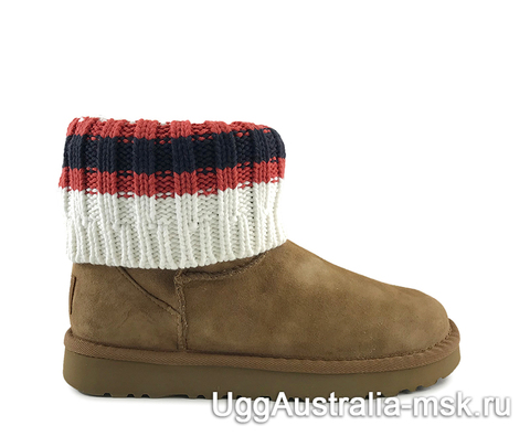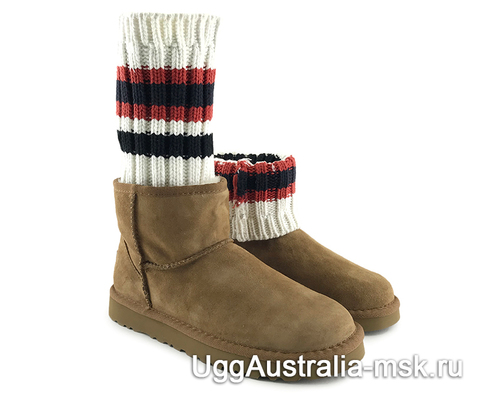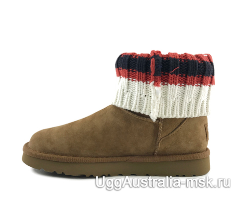 Короткие угги серого цвета UGG Sacai Knit Classic Mini Chestnut - сапожки с непревзойденным качеством от австралийского бренда UGG Australia. Данная модель станет ярким штрихом в Вашем обувном гардеробе за счет своего необычного дизайна. Сапожки можно носить в двух вариантах - с опущенным вязаным отворотом и с поднятым до конца. В любом виде они смотрятся очень стильно и современно. Нескользящая рифленая подошва станет залогом того, что Вы сможете с уверенностью передвигаться на любых поверхностях, а натуральная мериносовая шерсть защитит от любых морозов.