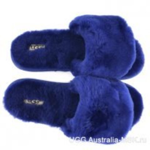 Открытые меховые тапочки UGG Slipper Navy. Сверху и внутри натуральный овечий мех австралийских овец тонкорунной породы. Тонкая практичная резиновая подошва с протекцией. Яркие уютные практически невесомые тапочки синего цвета. Овчина отличный проводник тепла. Как никакой другой, овечий мех обладает терморегулирующими качествами, благодаря чему меховые тапочки UGG Australia можно носить круглый год, зимой они будут согревать, а летом напротив охлаждать и не давать ножкам потеть.