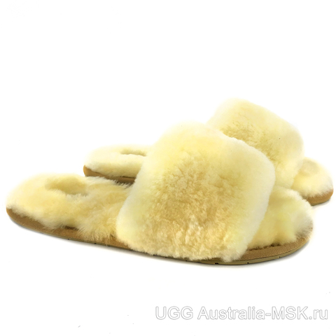 Открытые меховые тапочки UGG Slipper Sand. Сверху и внутри натуральный овечий мех австралийских овец тонкорунной породы. Тонкая практичная резиновая подошва с протекцией. Яркие уютные практически невесомые тапочки песочного цвета. Овчина отличный проводник тепла. Как никакой другой, овечий мех обладает терморегулирующими качествами, благодаря чему меховые тапочки UGG Australia можно носить круглый год, зимой они будут согревать, а летом напротив охлаждать и не давать ножкам потеть.