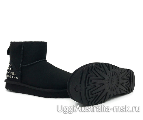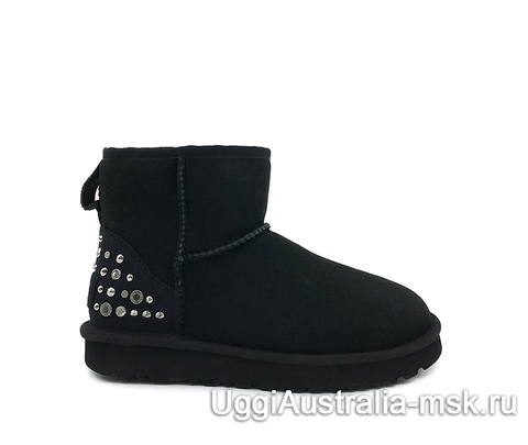 Черные укороченные сапожки UGG Women’s Classic Mini Studded Bling Black - модель, которая наверняка понравится ценительницам теплой и практичной обуви. Сапожки выполнены в черном цвете, имеют декоративные украшения на обратной стороне, которые придают особую изюминку. Такая модель будет удачно сочетаться со многими образами, подчеркивая хороший вкус своей обладательницы. Натуральная овчина во внутренней отделке и 100% замша в наружной поддержат оптимальную температуру как во время сильных морозов, так и в период оттепелей. Не упустите уникальную возможность купить UGG Women’s Classic Mini Studded Bling Black в нашем интернет-магазине с хорошей скидкой! Купить женские, натуральные зимние угги на нашем официальном сайте можно всего в один клик!