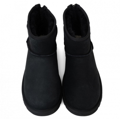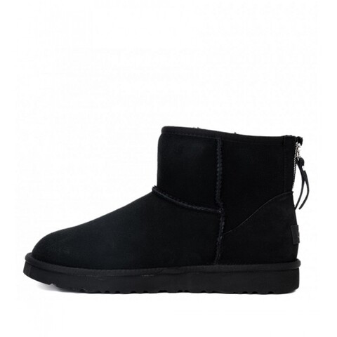 Минималистичные UGG Zip Mini Black с застежкой-молнией – это приятное сочетание комфорта и стиля. Черный цвет женских угг позволяет удачно комбинировать сапожки с любым нарядом. Сапожки сшиты из натуральной овчины, которая прославилась своей способностью согревать ноги даже при экстремально низкой температуре. В качестве верхнего покрытия использована замша – такой материал защитит Вас от влаги и не позволит любимой паре пострадать от весенней слякоти. Гибкая подошва из каучука со специальным рельефом убережет от неприятных падений на скользком льду.