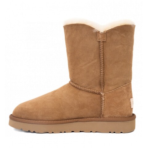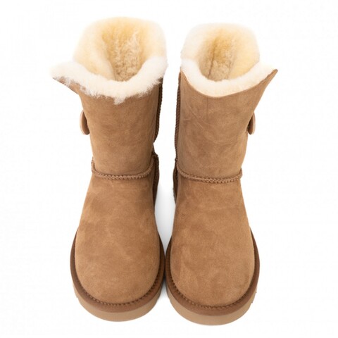 Уютные сапожки в приятном цвете «каштан» станут прекрасным дополнением любого образа. Несмотря на необычный оттенок, женские угги с легкостью можно причислить к базовым вещам гардероба. Сапожки выполнены из натуральной овчины и оснащены верхним покрытием из такого водостойкого материала, как замша. Подобная комбинация не просто защитит ноги от холода, но и обеспечит комфорт даже в отапливаемом помещении. Деревянные пуговицы на уггах придают оригинальность внешнему виду зимних сапожек.
