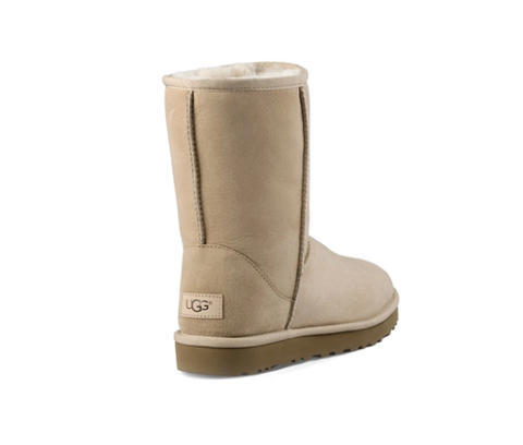 Зима – это не повод запирать светлую обувь под замок! Классические женские угги, песочный цвет которых навевает воспоминание о морском побережье, как никогда актуальны в холодное время года. Сапожки не пострадают от грязного снега, ведь замша, которая является верхним покрытием, очищается без особых усилий. Натуральная овчина сохранит ноги в тепле, а гибкая рифленая подошва не позволит Вам упасть на ледяной корке. Все это делает UGG Classic II Short Sand самой удобной и стильной женской обувью из вариантов, представленных на мировом рынке.